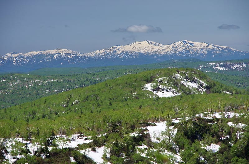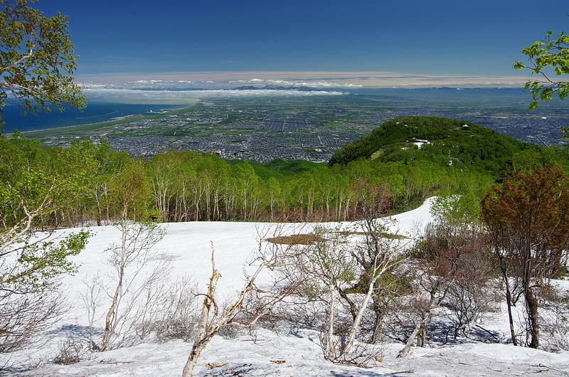 2013-06-05 6月4日の手稲山から 写真 これ以上は望めない程の青空の下、ついに頂上までダケカンバの新緑が到達した。 石狩湾の対岸に、まだ真っ白な暑寒別の山々。 樺戸三山の雪はほぼ消えた。 石狩平野の向こうに、残雪の芦別岳と夕張岳。 無意根山・定山渓天狗岳・羊蹄山方面の残雪と新緑。 頂上からの何時もの風景。 余市岳と朝里岳、こちらはまだ真っ白だ。 積丹岳と余別岳、積丹半島もまだ真っ白だ。 手稲山南斜面の新緑。 午前10時30分、小樽港を出港した新日本海フェリー。 残雪と新緑のコントラスト。 残雪を登る登山者と新緑のネオパラ山。 ケルンと余市岳。 シラネアオイと暑寒の山々。