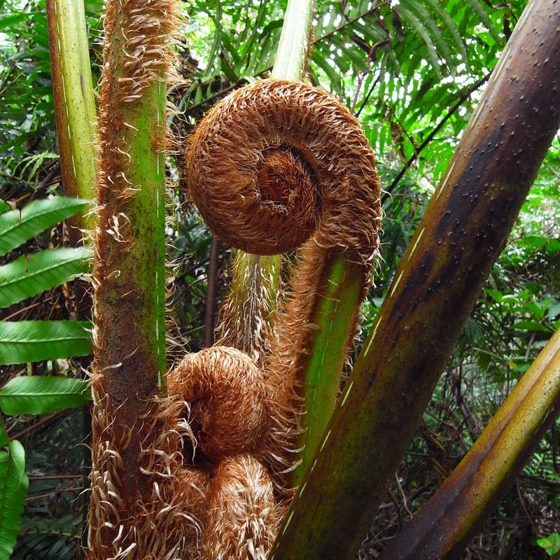 ヒカゲヘゴの新芽、巨大なワラビかゼンマイ、山ダイコンと言って食用になる。