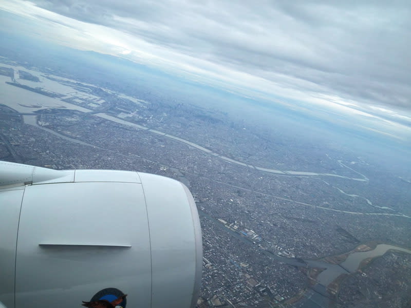 飛行機の窓から、焦点距離4.5mmのレンズであるから近景から遠景までピントが合う。