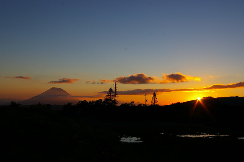 2008年8月4日 18時42分、中山峠の標高870m地点から眺めた羊蹄山と落日。