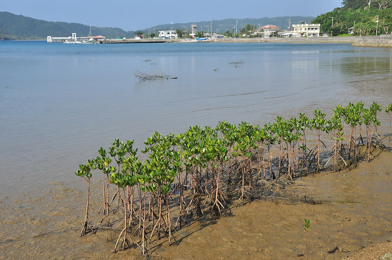 イダの浜の看板とモンパの木、誰も居ない。